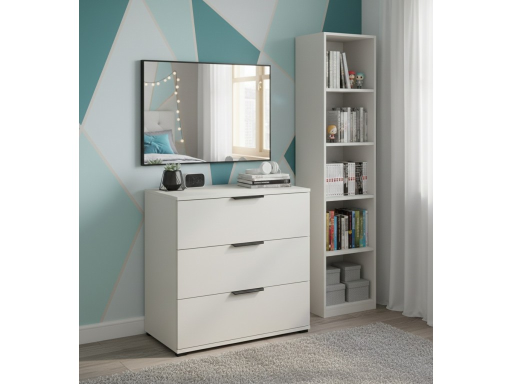Komoda Modena została zaprojektowana z myślą o harmonii i ładzie. Jej prosta, geometryczna bryła w kolorze czystej bieli optycznie powiększa przestrzeń i nadaje wnętrzu świeżości. To mebel, który nie tylko przechowuje Twoje rzeczy, ale stanowi istotny element dekoracyjny salonu, sypialni, przedpokoju czy pokoju dziecięcego.