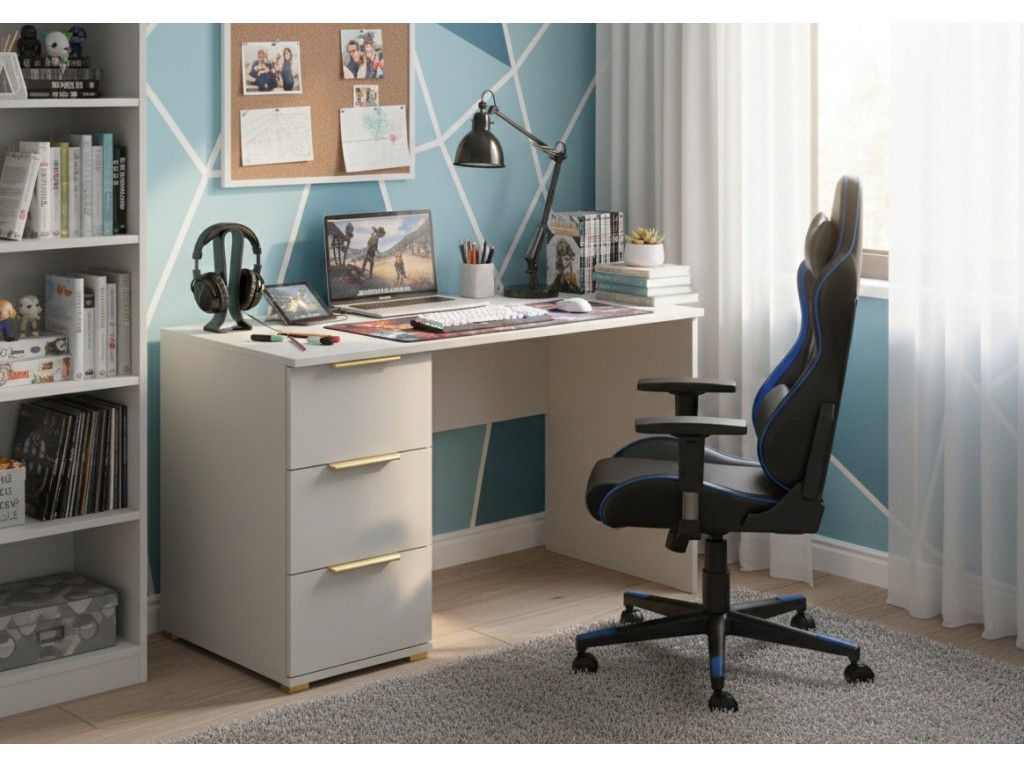 Inteligentne Przechowywanie: Trzy szuflady umieszczone pod ręką pozwalają na idealną organizację przyborów biurowych, zeszytów czy akcesoriów, dzięki czemu blat zawsze pozostaje uporządkowany.