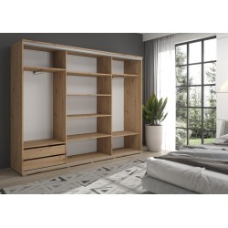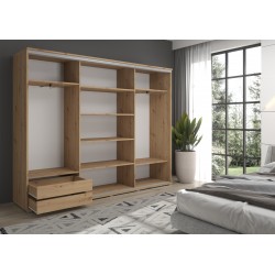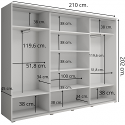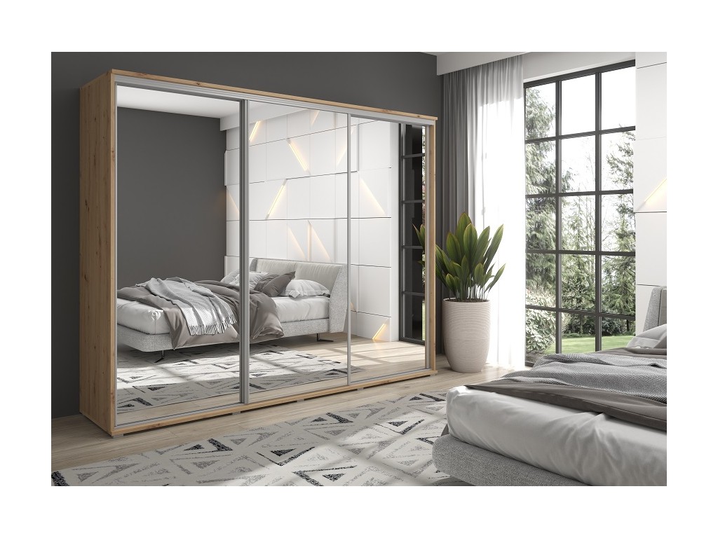 Szukasz eleganckiej i funkcjonalnej szafy do swojego wnętrza? Prezentujemy trzydrzwiową szafę przesuwną, która łączy minimalistyczny design z maksymalną pojemnością. Dzięki wąskiej konstrukcji (głębokość 45 cm) świetnie sprawdzi się nawet w mniejszych pomieszczeniach, oferując mnóstwo miejsca do przechowywania.