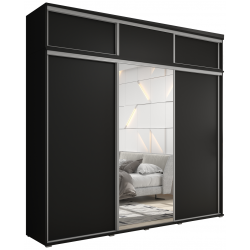 Zestaw z dużą szafą przesuwną i lustrem LAGO 1 - 220x247x61 cm czarna z systemem Sevroll, pojemna, trzydrzwiowa