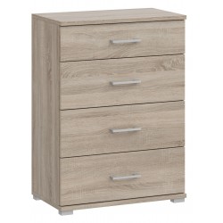 Wykonana z gładkiej płyty laminowanej o grubości 16 mm w kolorze dąb sonoma , cechuje się trwałością i łatwością w utrzymaniu czystości. Plastikowe uchwyty i nóżki w kolorze srebrnym nadają jej eleganckiego, nowoczesnego wyglądu.
