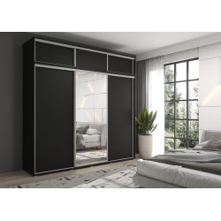 Szafa przesuwna czarna210 cm z lustrem to doskonały wybór do sypialni, garderoby lub nowoczesnego wnętrza. Jej imponujące wymiary — szerokość 210 cm, wysokość 247 cm, głębokość 45 cm — gwarantują dużą pojemność przy zachowaniu eleganckiego i minimalistycznego wyglądu. Wysokiej jakości materiały sprawiają, że mebel jest trwały, stabilny i odporny na codzienne użytkowanie.
