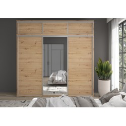 MONTI SLIM pojemna szafa przesuwna dąb artisan 210×247×45 to wyjątkowo funkcjonalny i trwały mebel do przechowywania całej garderoby. Dzięki dużemu lustru, solidnym materiałom i starannemu wykończeniu jest to zakup na lata. System półek, szuflad i drążków sprawia, że utrzymanie porządku staje się łatwe i wygodne.