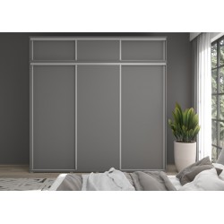 Zestaw z dużą szafą przesuwną i nadstawką LAGO 230x247x61 cm antracyt z systemem Sevroll, pojemna, trzydrzwiowa