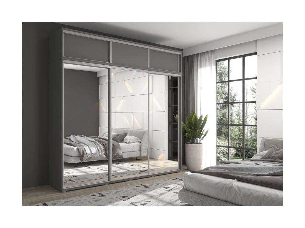 Zestaw z wąską szafą przesuwną i lustrami MONTI SLIM 2 - 260x247x45 cm antracyt, pojemna, trzydrzwiowa