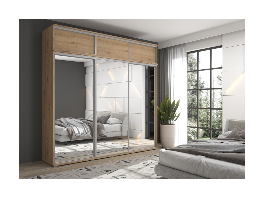 Zestaw z wąską szafą przesuwną i lustrami MONTI SLIM 2 - 260x247x45 cm dąb artisan, pojemna, trzydrzwiowa