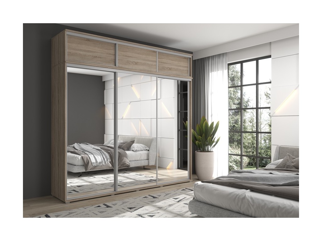 Zestaw z wąską szafą przesuwną i lustrami MONTI SLIM 2 - 250x247x45 cm dąb sonoma, pojemna, trzydrzwiowa