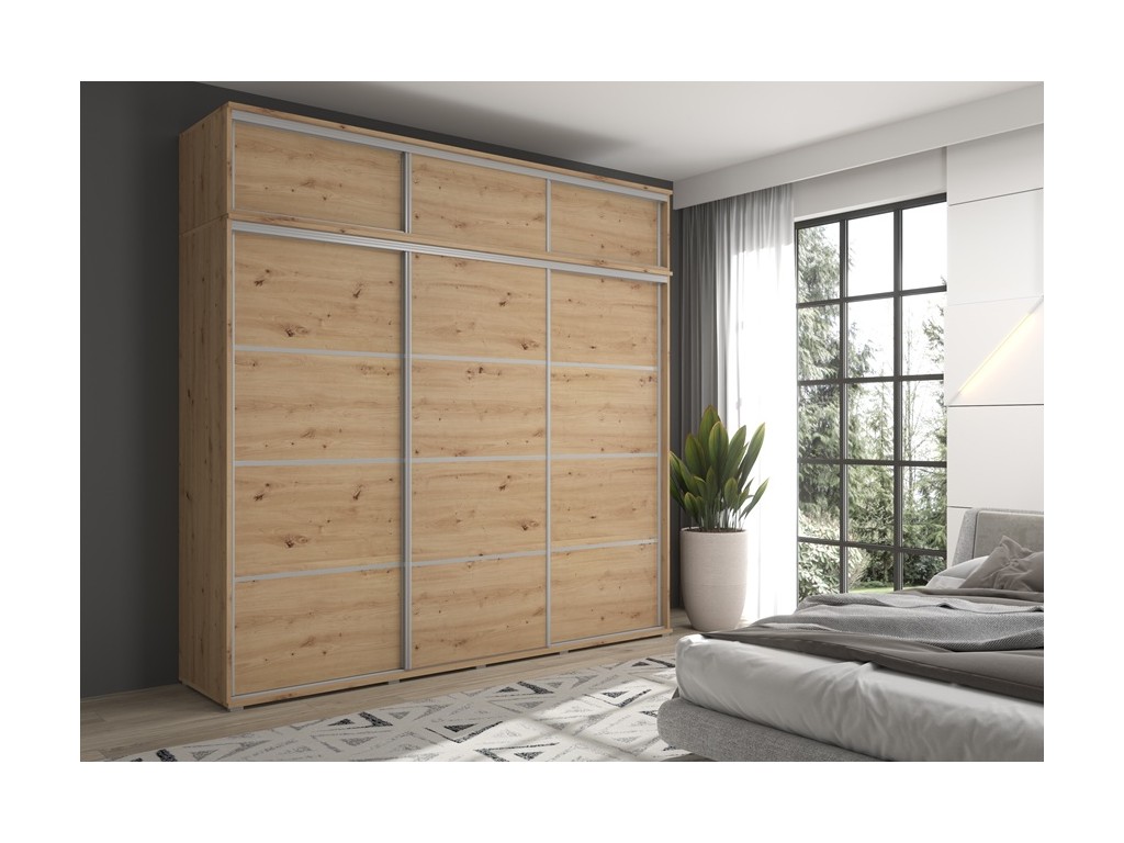 Zestaw z dużą szafą przesuwną i nadstawką LAGO 4 230x247x61 cm dąb artisan z systemem Sevroll, pojemna, trzydrzwiowa