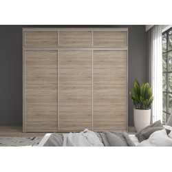 Zestaw z wąską szafą przesuwną MONTI SLIM 260x247x45 cm dąb sonoma, pojemna, trzydrzwiowa