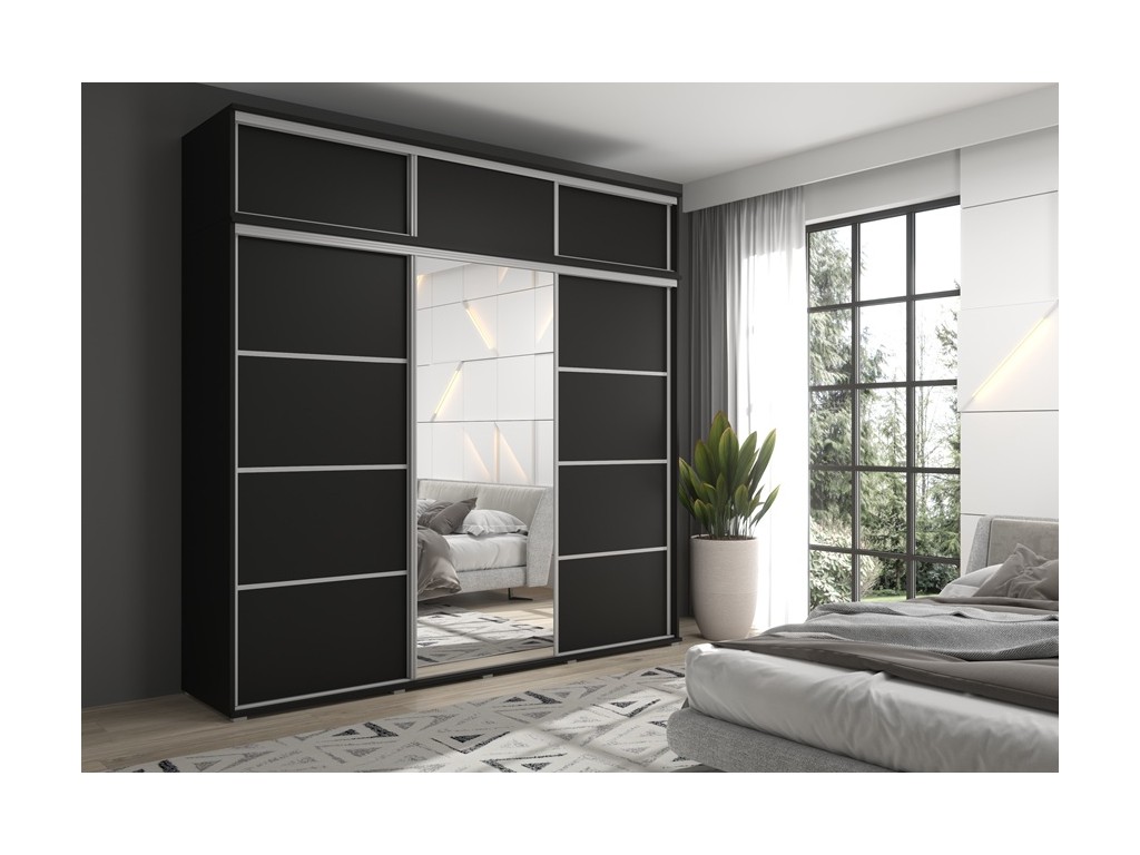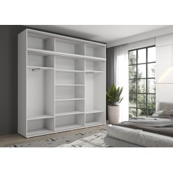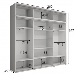 Szafa przesuwna biała 260 cm z lustrem to doskonały wybór do sypialni, garderoby lub nowoczesnego wnętrza. Jej imponujące wymiary — szerokość 260 cm, wysokość 247 cm, głębokość 45 cm — gwarantują dużą pojemność przy zachowaniu eleganckiego i minimalistycznego wyglądu. Wysokiej jakości materiały sprawiają, że mebel jest trwały, stabilny i odporny na codzienne użytkowanie.