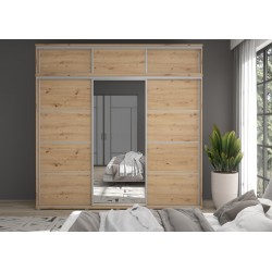 Szafa przesuwna biała 260 cm z lustrem to doskonały wybór do sypialni, garderoby lub nowoczesnego wnętrza. Jej imponujące wymiary — szerokość 260 cm, wysokość 247 cm, głębokość 45 cm — gwarantują dużą pojemność przy zachowaniu eleganckiego i minimalistycznego wyglądu. Wysokiej jakości materiały sprawiają, że mebel jest trwały, stabilny i odporny na codzienne użytkowanie.