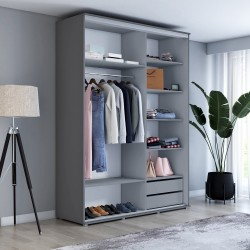 Szafa z drążkiem który ma udźwig do 40 kg. zapewni komfortowe rozwieszenie ubrań w szafie. Szafy przesuwne można dodatkowo wyposażyć w szuflady które ułatwia Ci utrzymanie porządku. Również dodatkową opcją jest możliwość zakupu oświetlenia Led w szafie. W Naszych szafach zaproponowaliśmy autorskie rozmieszczenie oświetlenia Led przyklejane na boki szafy przesuwnej co daje nam idealnie oświetlone wnętrze szafy od samej góry po sam dół.