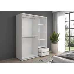 Szafa Gaja to nowoczesna szafa z drzwiami przesuwnymi, która została zaprojektowana z myślą o wygodzie i estetyce. Drzwi przesuwne nie tylko wyglądają elegancko, ale również są niezwykle praktyczne – nie zajmują dodatkowej przestrzeni przy otwieraniu, co jest szczególnie istotne w mniejszych pomieszczeniach. Aluminiowe prowadnice gwarantują płynne i ciche przesuwanie drzwi, a wysokiej jakości okucia Sevroll zapewniają trwałość i niezawodność użytkowania przez długie lata.