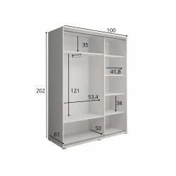 Szafa Liwia może być wyposażona zgodnie z Twoimi potrzebami. Standardowe wnętrze zawiera:
